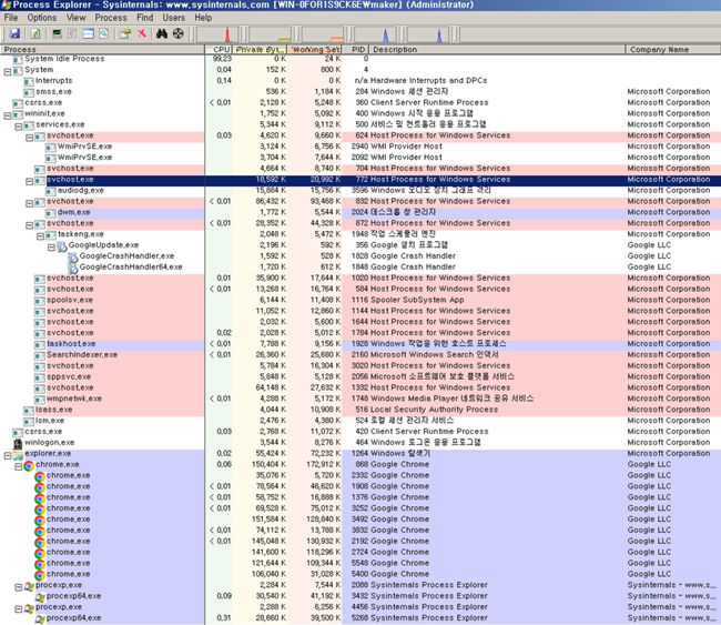 - 의심스러운 파일을 관리자 권한으로 실행 후 생성되는 프로세스 확인