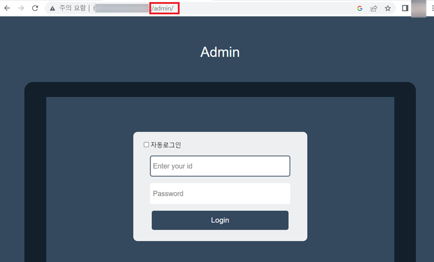 - 이름 그대로 관리자 페이지가 노출 되어져 있는 경우를 의미합니다.