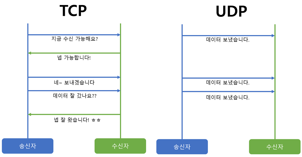 ※ 신뢰성 => 오류 검출, 재전송, 혼잡제어 같은 기능을 하기 때문에 신뢰성 있다 라고 표현하는 것이다.