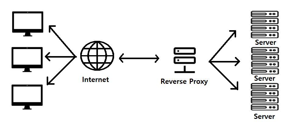 - Forward Proxy와 반대로 애플리케이션 서버 앞에 위치한 형태