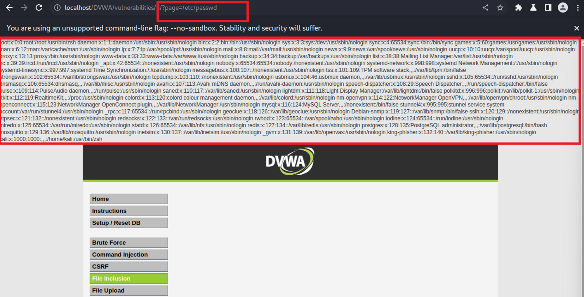 DVWA 환경에서 File Inclusion 공격 실습