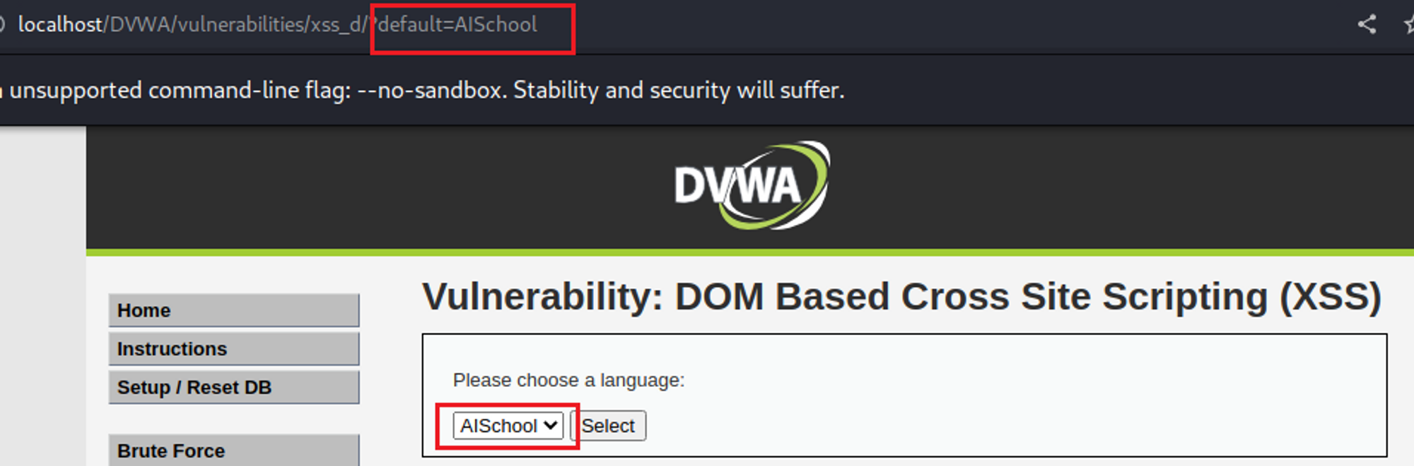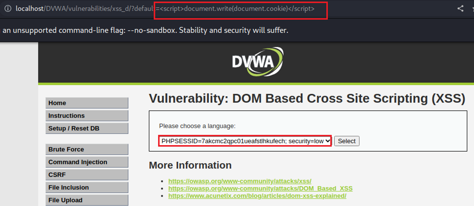 DVWA 환경에서 DOM Based XSS 실습