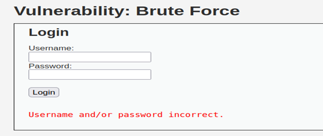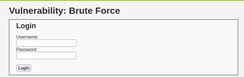 Brute Force 공격 실습을 위해 DVWA 페이지에서 Brute Force 페이지로 이동한 모습이다.