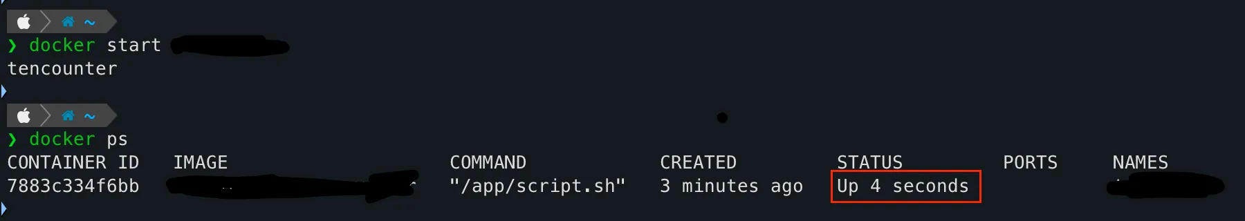 docker start또는docker run(docker run은 create와 start를 합친 명령)