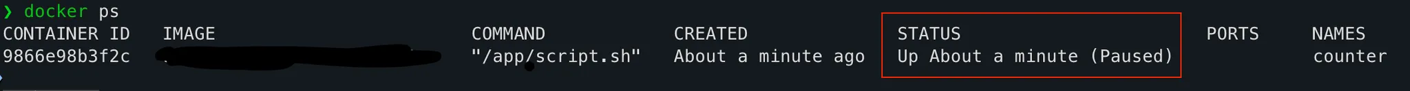 - 상태: 컨테이너의 상태는 유지되지만, 프로세스 실행은 멈춥니다.