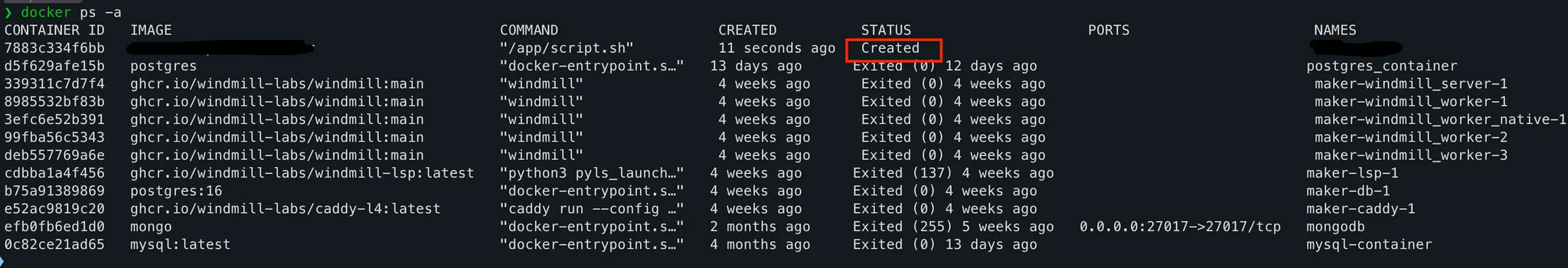 - 상태: 이 단계에서는 컨테이너가 생성되지만 아직 실행되지는 않습니다.